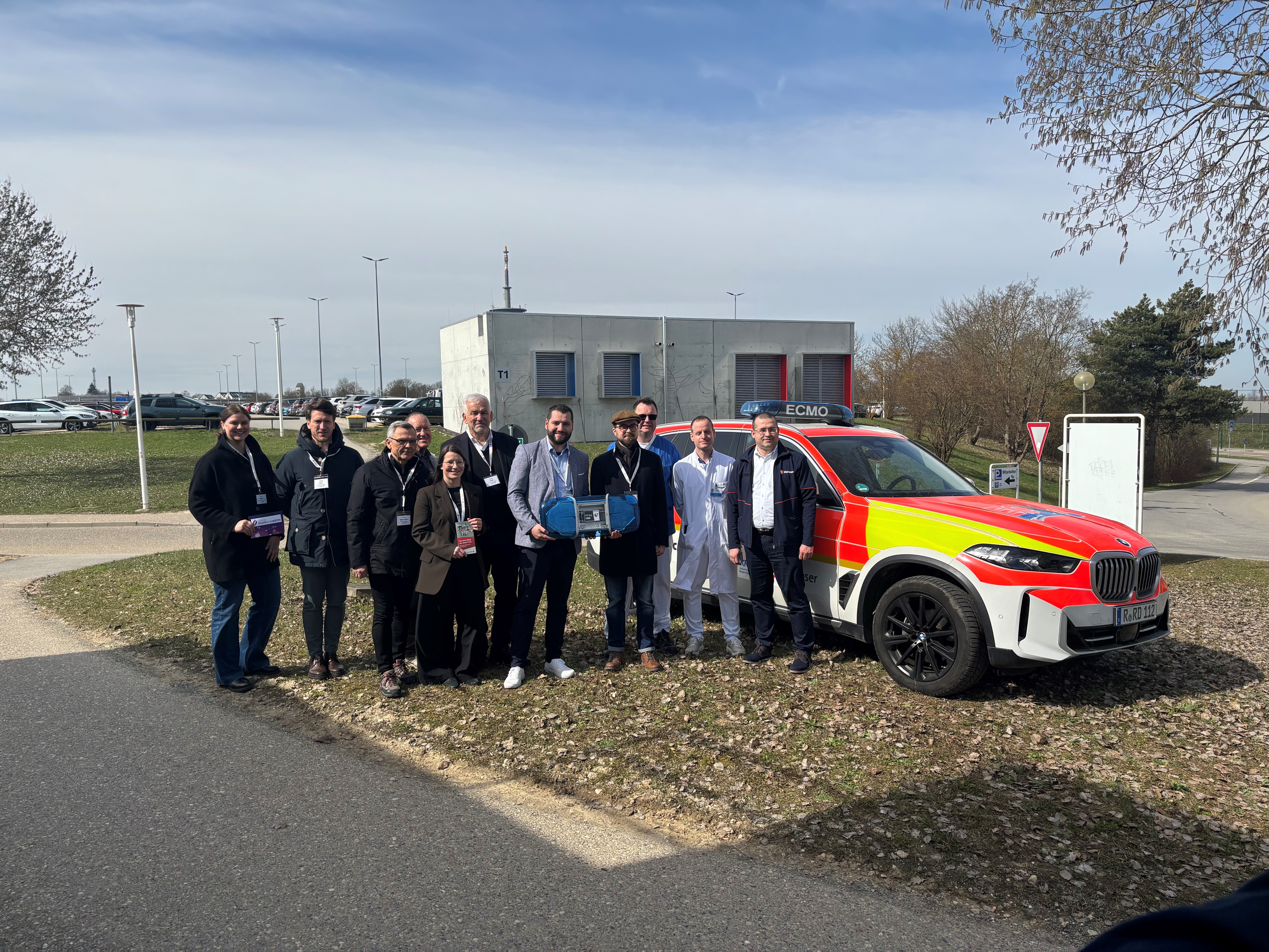 Die Testinstallation der Road-Side-Unit erfolgt an der Ampelanlage Einmündung Uniklinikum West und Franz-Josef-Strauß-Allee, der Onboard-Testbetrieb erfolgt mit dem sogenannten ECMO-Mobil des Universitätsklinikums Regensburg. Bei dem ECMO-Mobil handelt es sich um ein spezialisiertes Rettungsmittel, das ein mobiles Herz-Lungen-Unterstützungssystem (ECMO) in der Regel bei Herz-Kreislaufstillständen direkt zum Patienten bringt. „Bei ECMO-Einsätzen zählt in der Tat jede Minute. Wenn wir durch intelligente Verkehrssteuerung auch nur wenige Minuten gewinnen, kann das für das Outcome von Patientinnen und Patienten entscheidend sein“, erklärt Bernhard Graf, Stellvertretender Ärztlicher Direktor des Universitätsklinikums Regensburg. „Das Projekt bietet uns die Möglichkeit, innovative Technologie gezielt für eine bessere Notfallversorgung zu erproben.“
