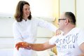 Prof. Dr. Maya Niethard, zertifizierte Tumororthopädin und neue Leiterin des Sarkomzentrums am UKR, bei der Nachsorge eines Patienten nach der Entfernung eines großflächigen Tumors an der Schulter. © UKR/Vincent Schmucker