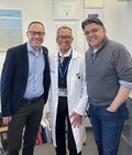 v.l.n.r.: Professor Sebastian Hahnel (Direktor der Poliklinik für Zahnärztliche Prothetik am UKR), Professor Markus Blatz (Lehrstuhlinhaber für Restaurative Zahnmedizin an der University of Pennsylvania) und Michael Bergler (Wissenschaftlicher Mitarbeiter und Zahntechnikermeister an der Poliklinik für Zahnärztliche Prothetik am UKR). © UKR/Michael Bergler
