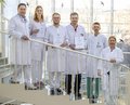 Prof. Dr. Hans J. Schlitt (Direktor der Klinik und Poliklinik für Chirurgie, li.) und sein Stellvertreter, Prof. Dr. Stefan Brunner (2.v.re.) zusammen mit den Preisträgern (v.li.): Dr. Kristina Wohlfart, Benedikt Wagner, Dr. Markus Götz und Prof. Dr. Christina Hackl (Geschäftsführende Oberärztin). © UKR/Johannes Beutler